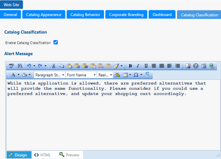 Alert MessageEnter the alert message to be displayed when user selects a non-preferred catalog for checkout.