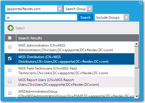 4. Search for the Groups or OUs/AUs you want to add and place a check mark next to the item found.