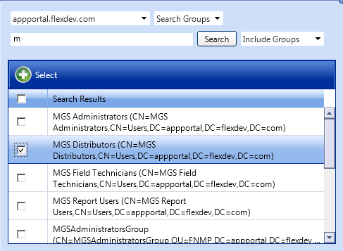 Search for the group, OUs, AD property, collection, or Intune Group you want to add and place a checkmark next to a item in the search results.