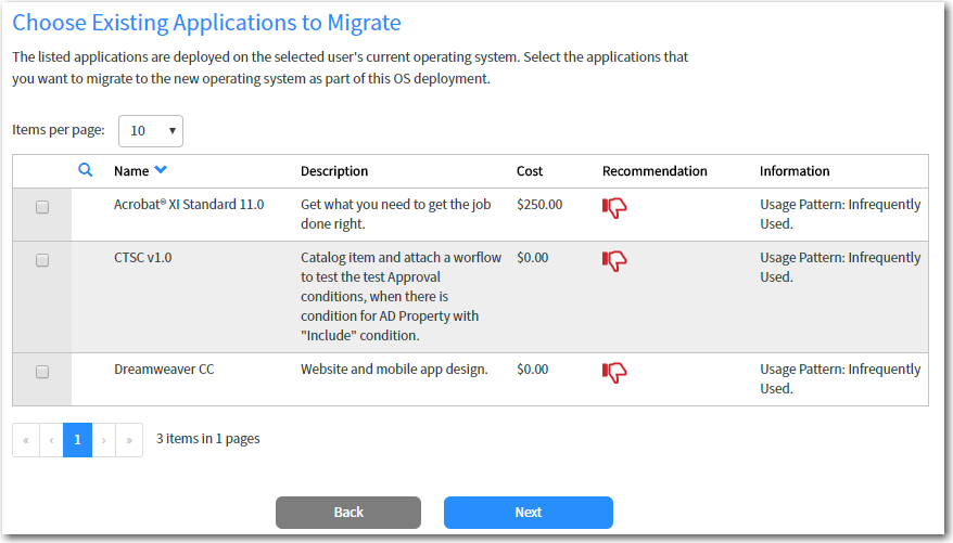 13. Search for an existing computer (if desired), and then click Next. The Choose Existing Applications to Migrate panel opens, listing the applications installed on the specified existing computer.