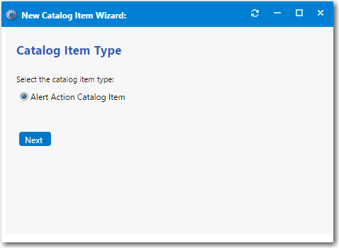 3. Click Add New Alert Action Catalog Item. The New Catalog Item Wizard opens.